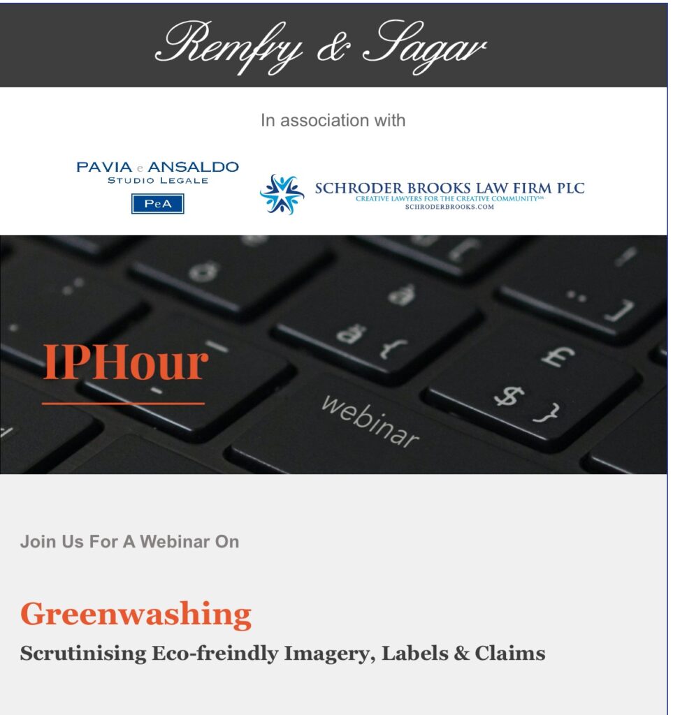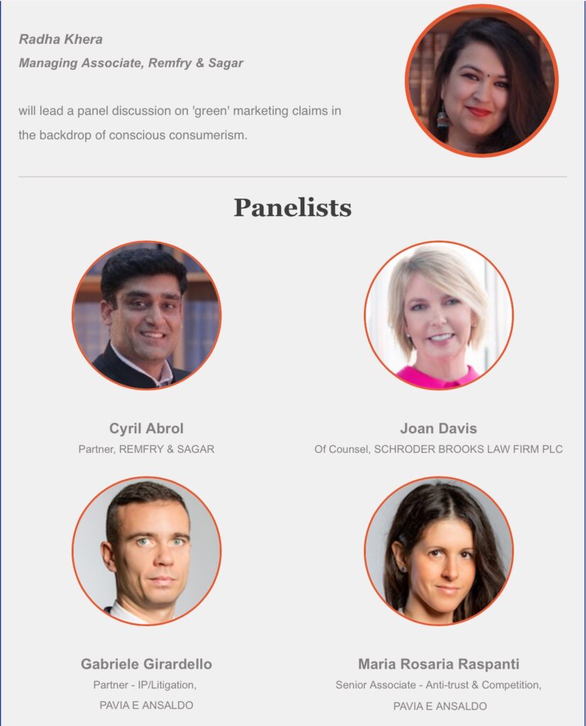 Remfry & Sagar, in association with Pavia e Ansaldo (Italy) and Schroder Brooks Law Firm PLC (USA) organised a panel discussion on this topical issue titled: ‘GREENWASHING – Scrutinising Eco-friendly Imagery, Labels & Claims’.
