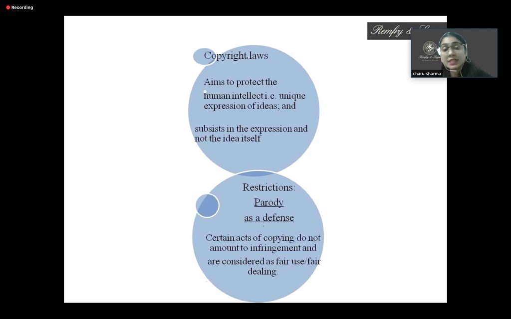 Earlier this month, an internal knowledge sharing session at the Firm involved a presentation on the ‘Defence Of Parody In Copyright Law’. Charu Sharma, Senior Associate at Remfry & Sagar, shared expert insights on recent Indian judgments in this domain and also drew comparisons with the treatment of ‘parody’ in foreign jurisdictions.